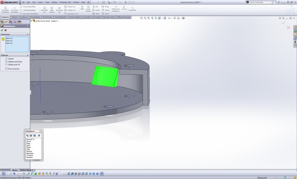 I am trying to add a swept or loft feature that starts out as a half circle and receeds into the side. i am attaching the file. by doing a swept feature, the feature goes into the inside of the part, which I do not want. I just want the external part of the feature. any suggestions? it is the last feature in config option 2. thanks for any help.