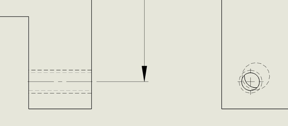 Here is a simple "H" shaped block that is machined on both sides. The holes overlap slightly due to hole size and bolt circle placement. On my drawing, because the holes overlap, it shows the full cosmetic thread of the far side holes. Other than hiding the cosmetic thread of these holes, is there a way to show just the partial cosmetic that you would technically see from the near side?