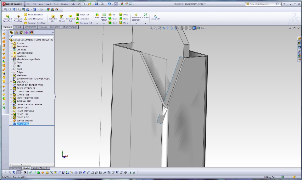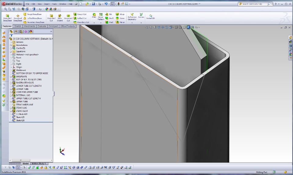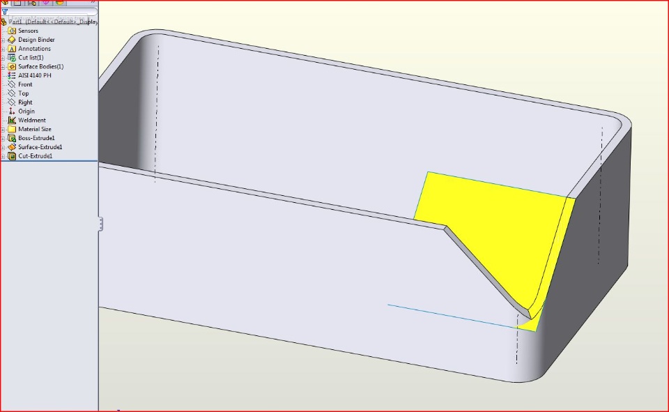 Look at the sketches. How do I make that cut in Solidworks? Very easy in the real world. not so easy in Solidworks. Any ideas?