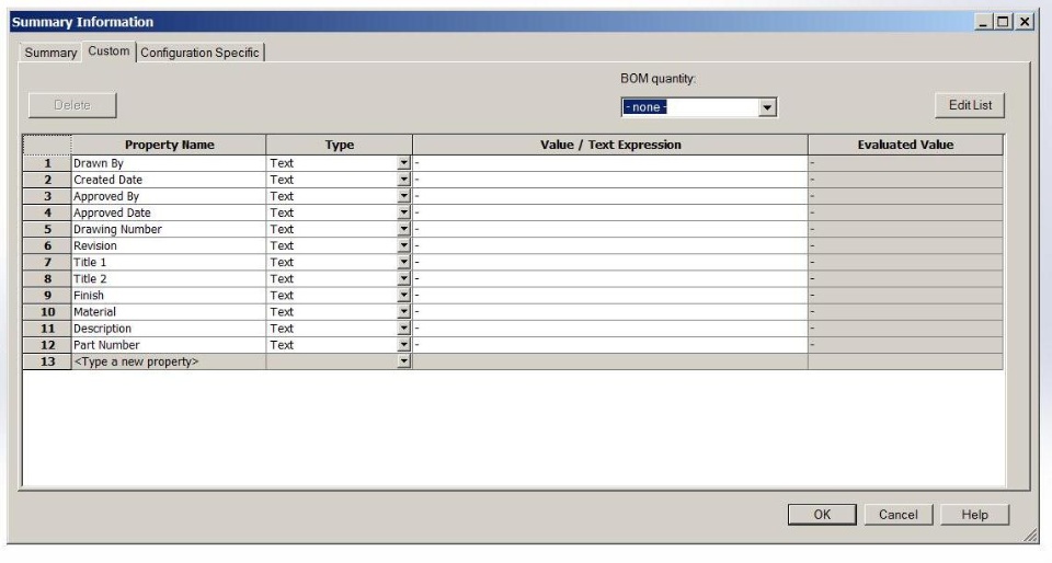 We use the "Summary Information Custom" Tab to Fill-in our part info manually but I want this to be populated automatically.
