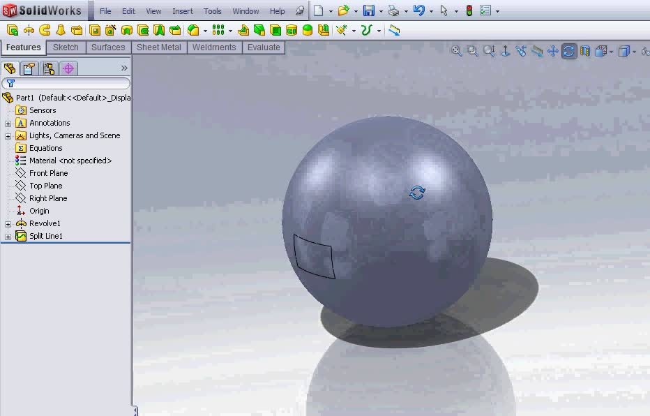 I have projected a sketch on the face of a ball, and now I want to color this area with a different color.