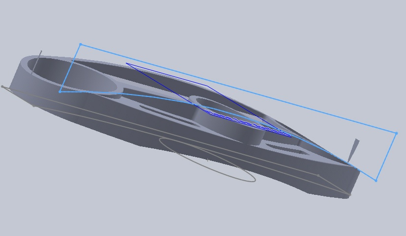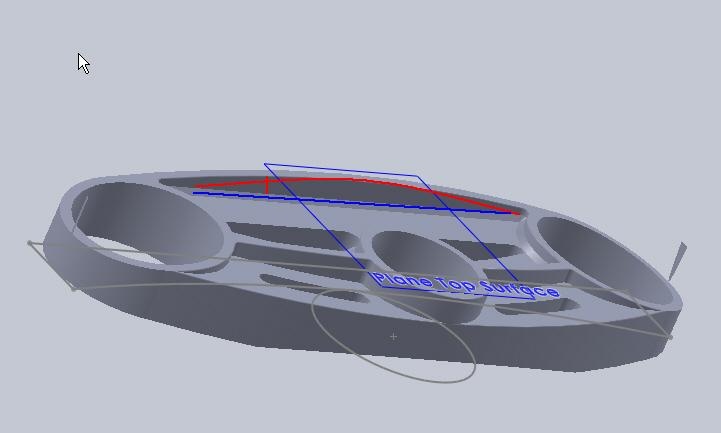 I'm trying to model a motorcycle triple clamp. The top surface is a curvatured profile, as is the bottom surface. I've sketched a profile using a 'cross' plane to get this profile.