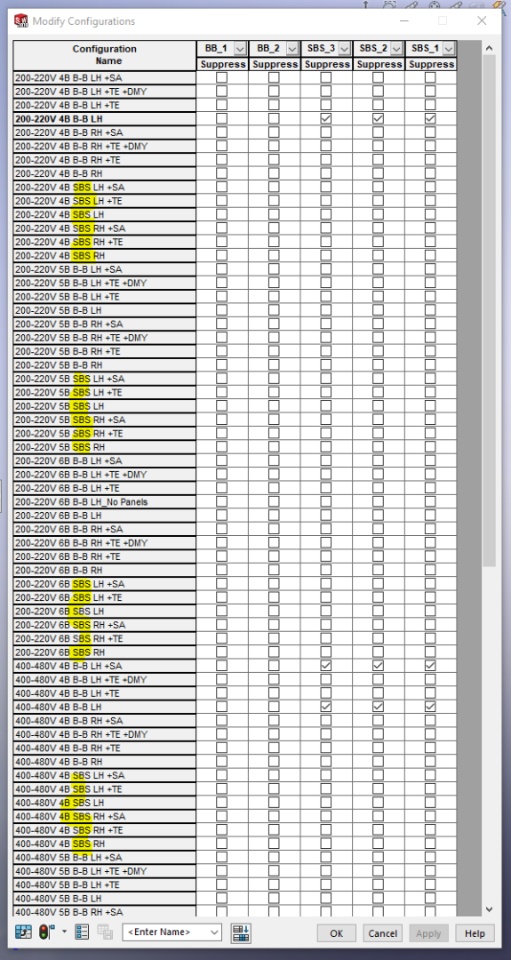 For example, in the pic attached, I would like to only show (or hide) all "SBS" configurations so that I can add (or clear) the "suppressed" check box
