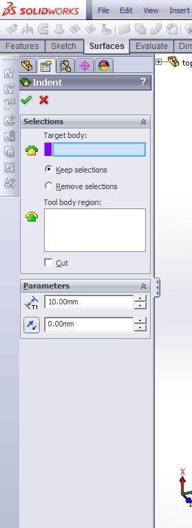 Pretty much, I would like to move up a bolt to a part in an assembly, hit a button and get a matching cutout for a thread with an offset so bolt will go in freely. We don't use standard threads sometimes. In this specific part, an extension spring is going to be threaded on to a special thread to hold it in place.