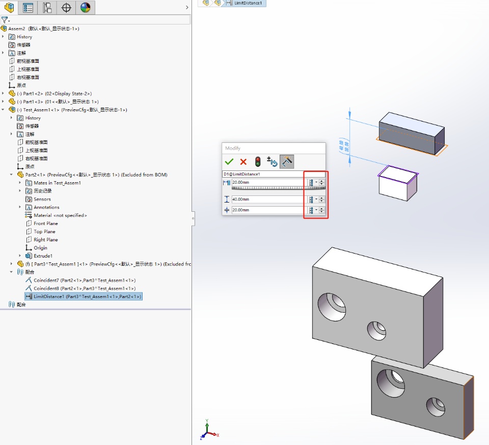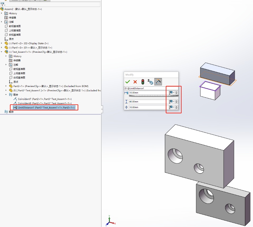 boolstatus = Part.Extension.SelectByID2("LimitDistance1@Test_Assem1-1@Assem2", "MATE", 0, 0, 0, True, 0, Nothing, 0)