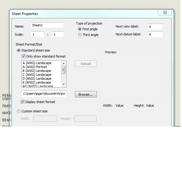 I updated my drawing template, then save it on "seve sheet format", when open new drawing with updated drawing template, evething updated, but only on "Sheet Properties/Type of Projection" still keep "First Angle" which I changed to "Third Angle". I don't know what I am wrong to setup new drawing template.