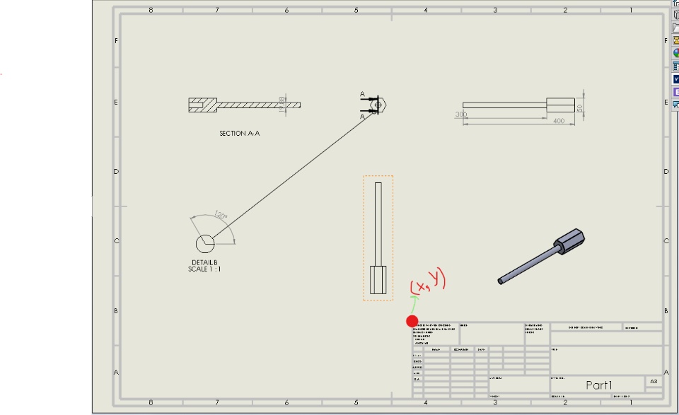 I would like to find the x,y value of the sketch ( line) given in the attached image. I am new to Solidworks API. I would like to rescale the sheet if any view intersects/overlaps to this fixed area.