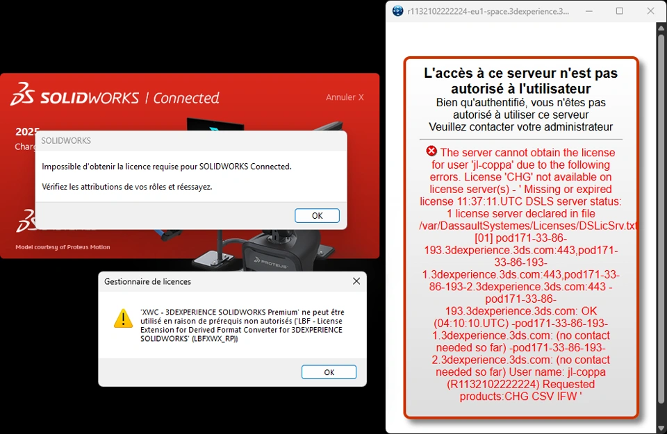 Solidworks has been reinstalled, and the messages are identical whether the “Derived Format Converter” application is installed or not.