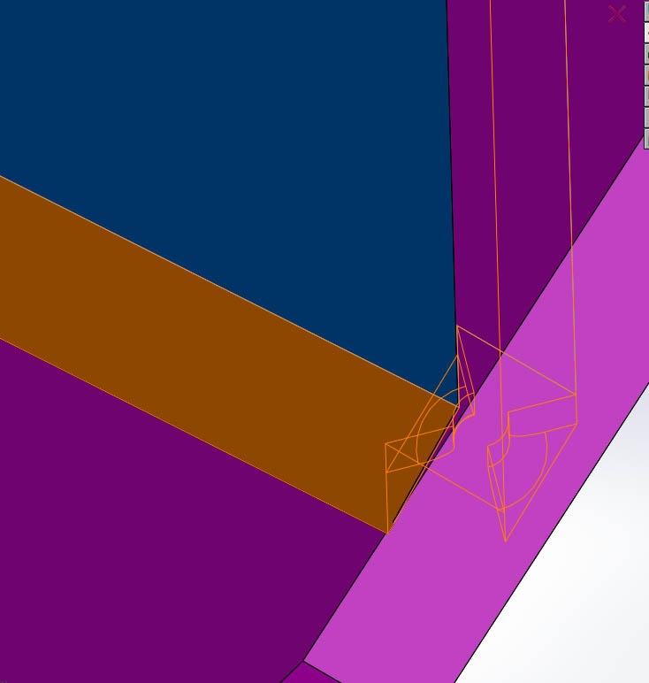 I have an assembly where this blue brown slab protrudes into the purple body. It insists I have a clearance when I cut it out and I actually need some sort of clearance when the parts are injection moulded in plastic. So I have mated the parts, indented them with a little clearance, and then mated them again. I am a bit worried that moving them for the second mate will cause a 'second cut'. I have also got the clearance wrong and would like to expand it which will break a hundred mates all over again. I don't know what the correct procedure is for that. Any help welcome!