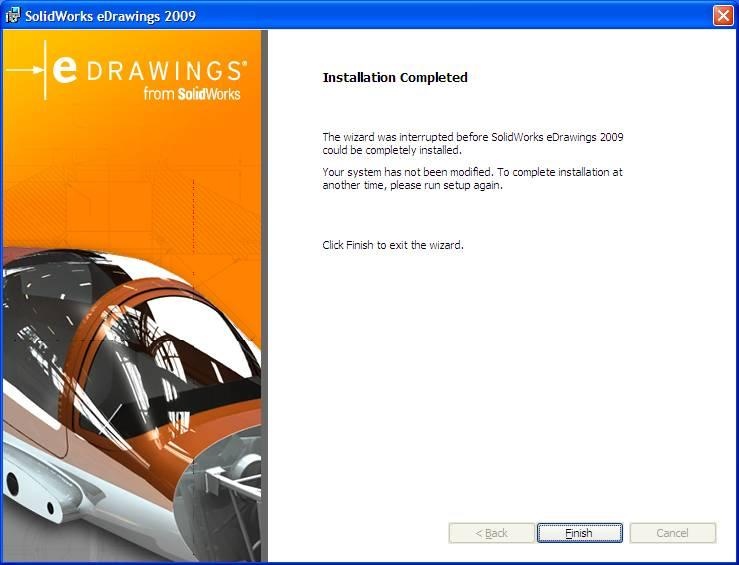 I am having trouble with all installations of the eDrawingsviewer 2009 sp0.0 - 2.0 with machines that don't have SW. Theproblem is that our signatures, which are custom properties, do notshow up when using the viewer on any machine without SW. I get thismessage when installing. After several reinstallations I finallyread the whole thing. I think "Installation Complete" is extremelymisleading after you read the next part.