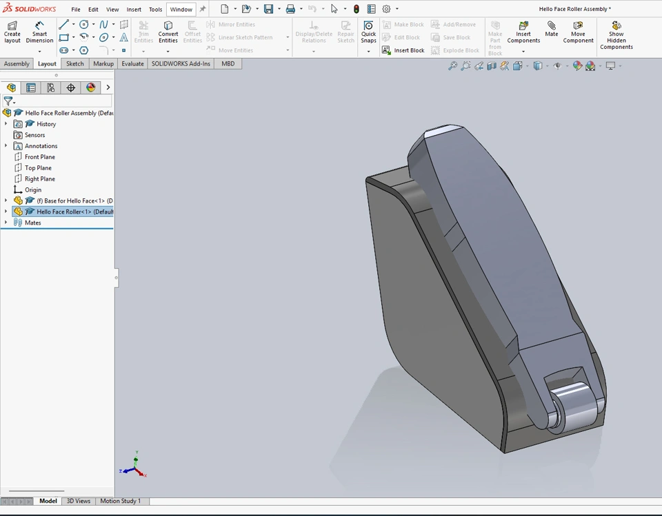 In the image below I have an assembly loaded with two parts (a microneedle device and a base I am designing for it). I want the base to perfectly fit the device and have already arranged my mates so the position is perfect.