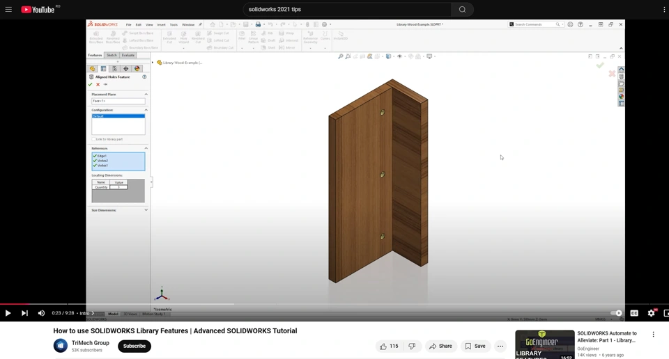 Is it possible to create a features library that will give the holes in two parts of an assembly and populate them?
