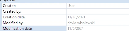 I have the following system attributes that are greyed out and I am unable to modify them. Is it possible to change the modified by attribute to initial ?