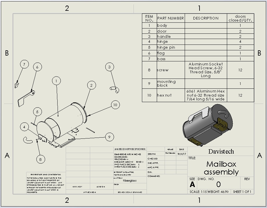 There isn't much of an ansi standard for an assembly drawing so I just made an exploded view and isometric view and BOM. Is there anything you would do different?