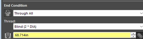 When I go to edit the hole in the part I get this error and the thread depth goes off the chart: