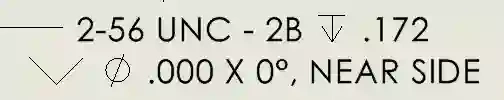 I restore the default thread depth value and re-enable the near-side countersink with diameter of .100in and angle of 100deg, and the whole process repeats with the drawing showing zero for the diameter and angle.