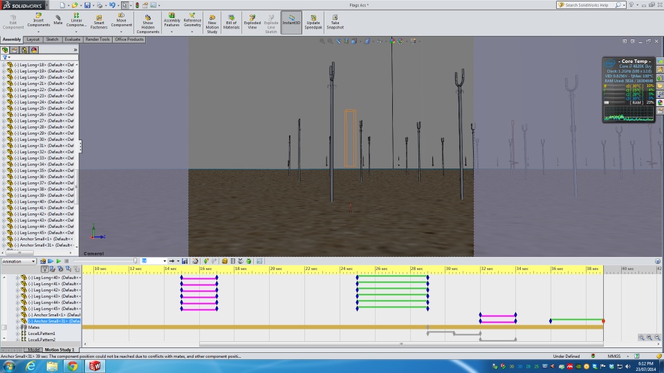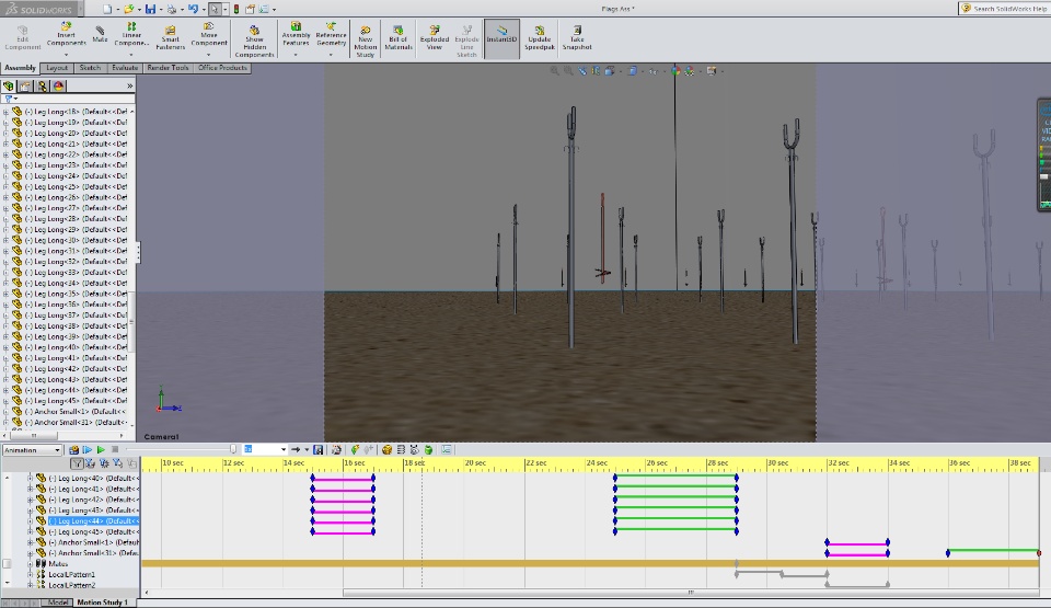 I am having massive issues with the animation of an anchor getting drilled into the ground. The only restriction in the anchor is an advanced screw mate. When i create a key in the animation of the possition i want the anchor to be in after being drilled in the animation calculates and produces a red key. When i hover my mouse over the red key the position the anchor is meant to be in shows up. When i play the animation the anchor rotates the wrong way and incredibly slowly. i have tried deleting the part and that part of animation several times and it still isnt working. I cant think of anything that solidworks would have an issue with in regards to this animation, a simple screw mate animation?