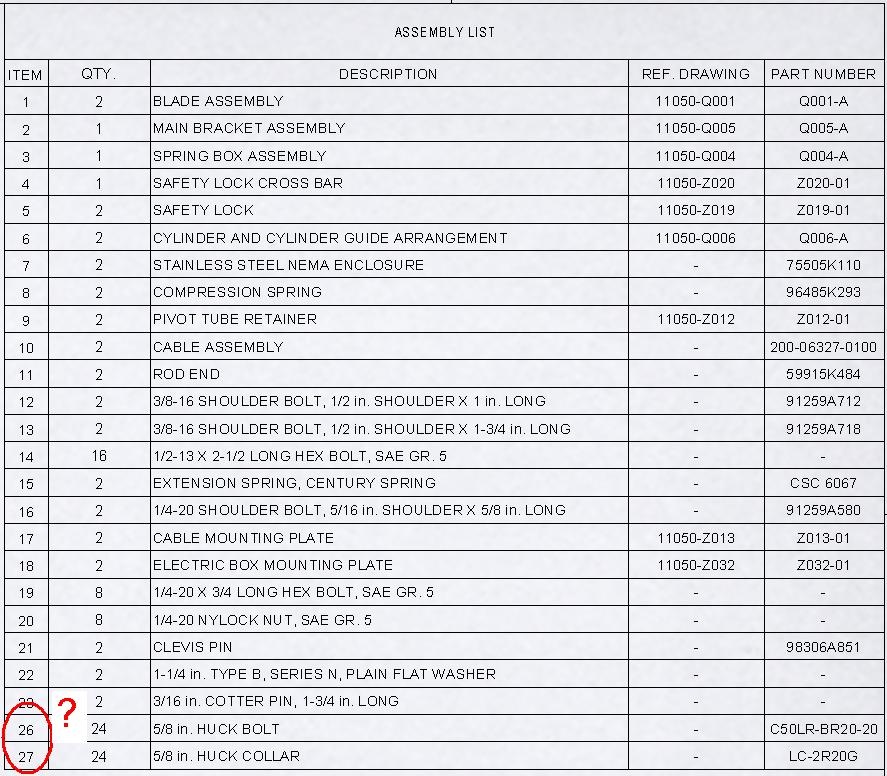 ... ahh, this drawing interface.... I have an assembly with 25 items in the parts list. I HAD just 23 in the list, but I had to add a couple of components. Unfortunately, the Parts List brought them in as items #26 and #27 instesd of #24 and #25 (see attached). I can "cheat" the Parts List and the Item Balloons, but I really doubt that's the way the folks who programmed SW intended it to work. Unfortunately, I can't figure out where I have to choke it to get it to renumber the Line Item numbers so they don't skip a couple. How do I DO this???