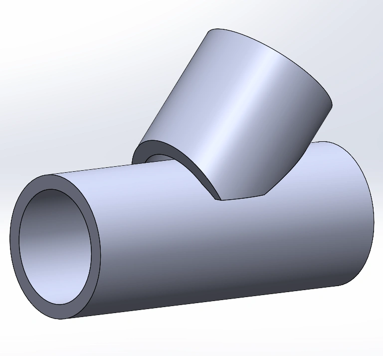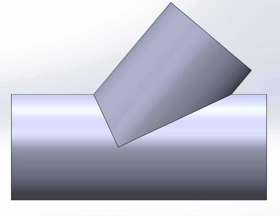 Good afternoon. I need to perform a laser cut on a cylindrical tube at a diagonal angle, which will precisely contour around another intersecting tube. When utilizing the Structural Component feature within SolidWorks, the software automatically generates a beveled cut (mitre joint). However, due to the constraints of the laser cutting machine — specifically, its inability to adjust the cutting head angle — the cut must be executed as a square cut, orthogonal to the longitudinal axis of the tube.