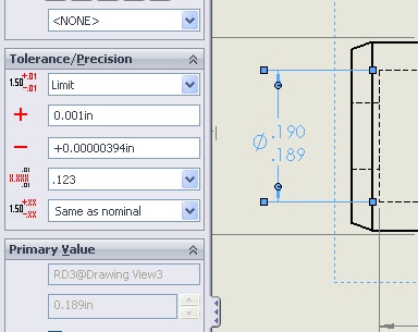 One of our SW setups has a unique problem. He just loadedSW2009 (he is still running SP0, he will be upgrading thisafternoon) and ran into some problems. When he loads drawingscreated in previous versions, the limit tolerance opens with valuesof .00000394 and -.00000394.
