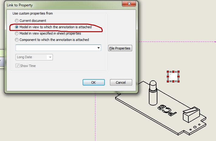 I have an assembly built from 3 different parts. I made a drawing of the assembly. In that drawing there is one view (ISO) that is of the assembly. the other views in the drawing are views of the parts, not the whole assembly. I would like to just have a view of the assembly for reference but detail the components on the same drawing since they are all really simple pieces. My problem is linking the mass property to display the assembly weight. I linked to the mass but the link is pointing to one of the components, not the whole assembly. If i make another drwaing with only an assembly view the weight is correct. My qiestion is how can I point that mass property link to the assembly not the part? Is there a way to switch that? Thanks.