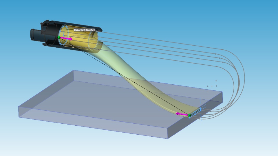 I need some help. I am trying to create what I would assume to be a loft. I don't particularly care if it is a surface or a extrude, I just need it to go around a curve, but I cannot get it to work. I need to somehow tell it to change directions from the bottom sketch, but when I do that in the loft command it doesn't work. I am trying to do this in the context of an assembly to join the two parts with a third part (bundle of fiber optic strands) Any assistance would be greatly appreciated. I have attached the file as well.