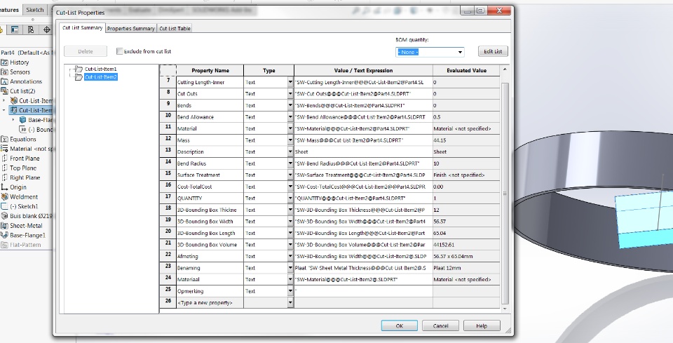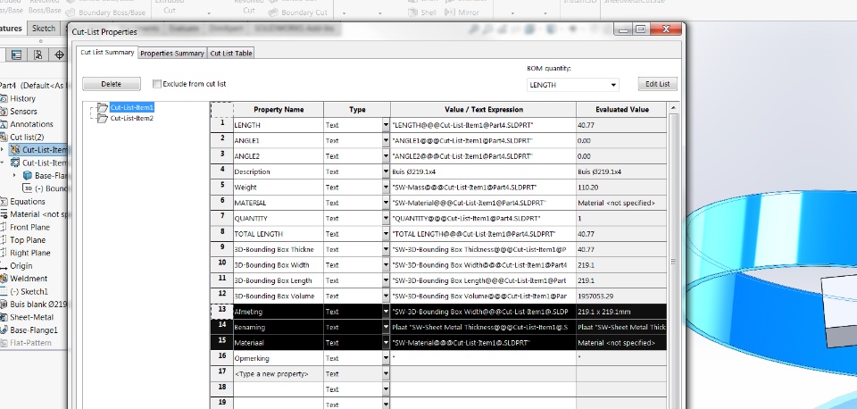 On my Solidworks 2017 sp4 version i'm running a macro to automattically create/fill a cutlist with my own property names for sheet metal body's.