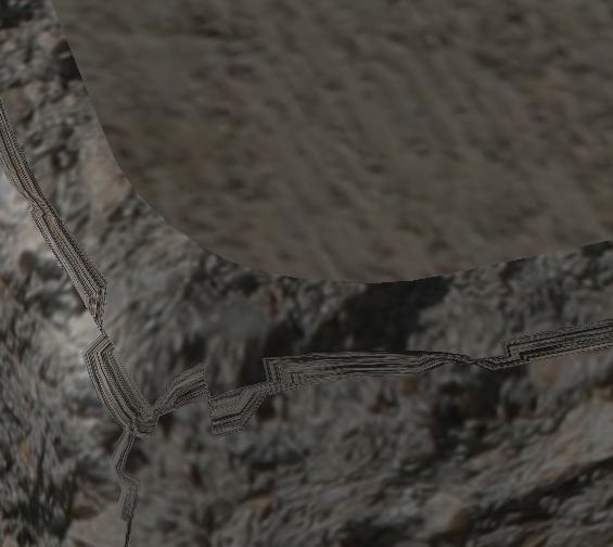 I have a stone model and I need to remove these artifacts on the edges. This appears when using the "mapping box. Area mapped again unable to build on the adjacent area (central area <> radius area).