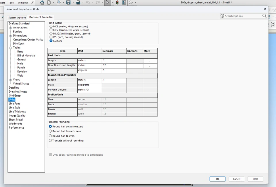 Trying to set mass properties decimal to 1, but box is greyed out. Seen a post from 12 years ago that had the same problem, and answers said to set properties to custom. I've done that, but still to no avail. Any opinions or solutions? Solidworks 2025 - SP1 if that's relevant.