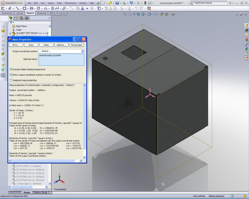 I have really not had the time to ever mess with mass properties before, but looking at this, I don't feel comfortable that the information that is presented here is correct. Breaking down the surface area myself I come up with around 490.5 ft. the number that is here breaks down to 907.59 ft. so after seeing this I also don't feel comfortable with the weight, since we will be picking this up with lugs and installing it, I cannot afford to have incorrect information. is there something here that I am not doing correctly?SolidworksAssemblies