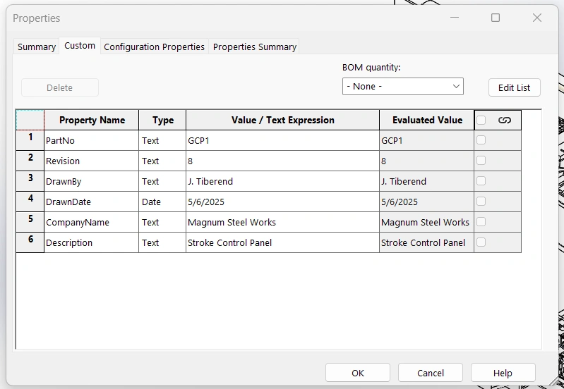 I have an assembly with custom properties. I wanted to add to the list, however the " can someone help to restore this option? See attached screen shot. Thank you for your help.