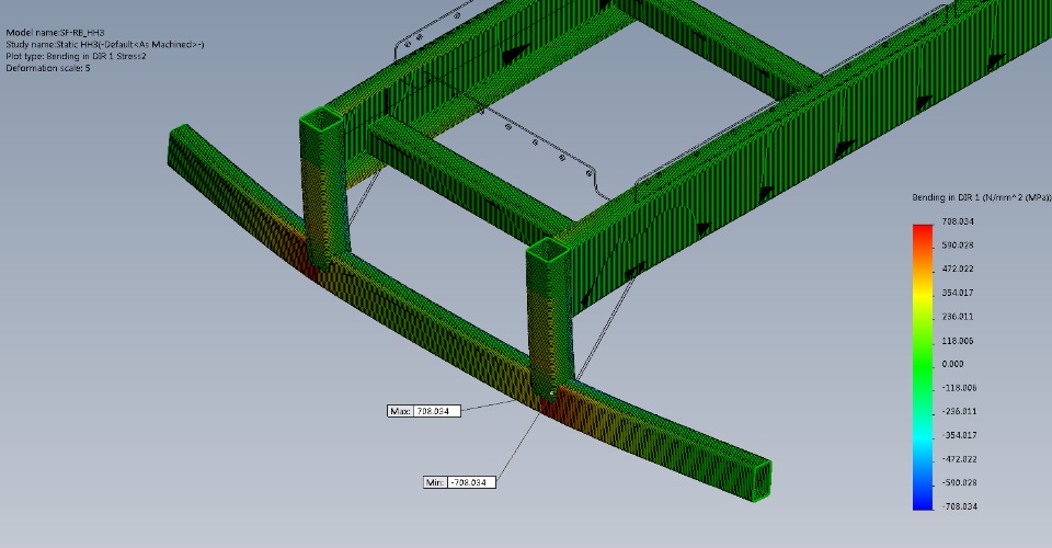 Hi there, this is the first time I do mixed mesh using beam and solid elements. As can be seen from the pictures of a trailer chassis, I have applied load on the longitudinal under-run bar at the bottom. I have checked that the displacement is good with the beam and solid bonded together well (I am using the same element size for both). The problem is that when I increase the thickness of the triangular gusset, the maximum bending stress is still the same at the same location. In short, the effect of the gusset does not seemed to be captured by the FEA. Why so?