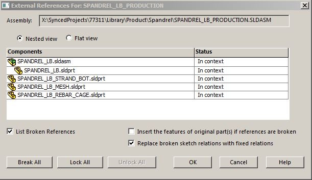 I have an assembly that has a sub-assembly and some other parts in it. We have several of them that are basically the same except for the sub-assembly is different (all the parts are the same). We have a “cloning” process where we make new assemblies from old ones by copy and paste in Windows Explorer, re-name and change the sub-assembly reference during the open dialog box. For the first time in years of doing this, when I try to change the sub-assembly reference, it says that it (the current one) is saved internally to the assembly. The thing is, it’s not. It was not created that way, it is not listed that way in the tree and I have the option to make it virtual. It appears as a separate file in Explorer and the top level assembly appears in the “Where Used” tab in SW Explorer. It is also listed as an external reference. I’m at a loss as to how this might have happened and how to fix it. I’ve opened the sub-assembly and Save-As over the old one to no avail. Anyone have any suggestions?