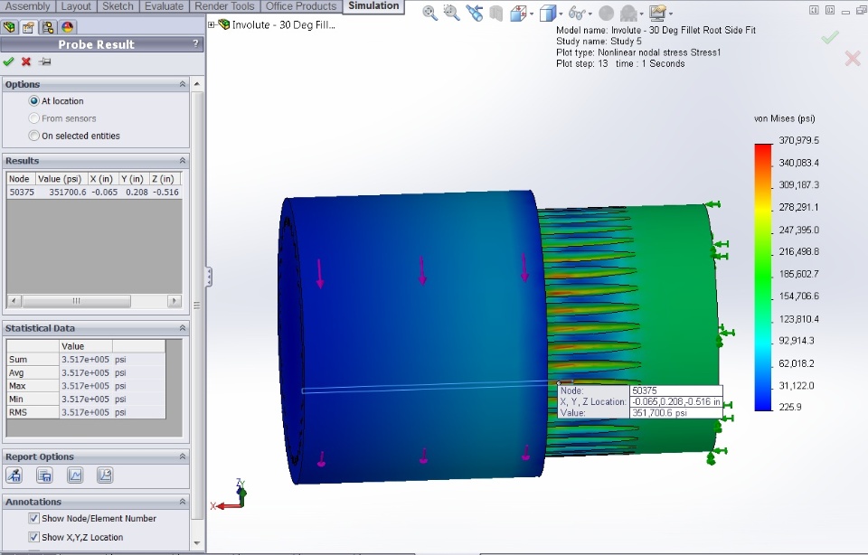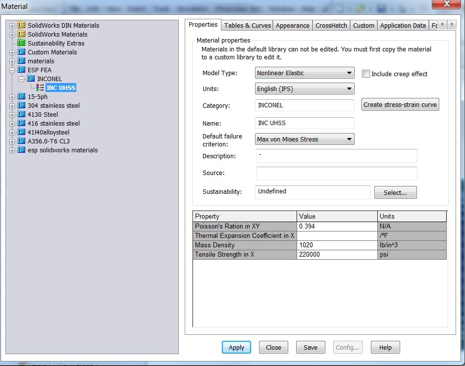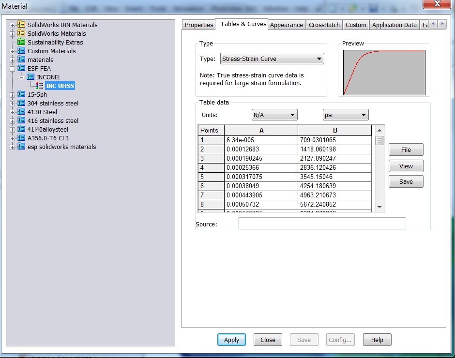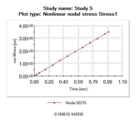 I'm trying to run a nonlinear simulation on a spline that's undergoing torsion. I want to see how it behaves past its yield point so I created a new material with the same properties as before and a stress strain curve seen in the attached images. Yet, each time I run the simulation the response seems to be linear as seen below in the response graph. As you can see, the stress rises well above the yield point of 212000 psi for the ultra high strength inconel. Does anyone have any idea on what I might be doing incorrectly?