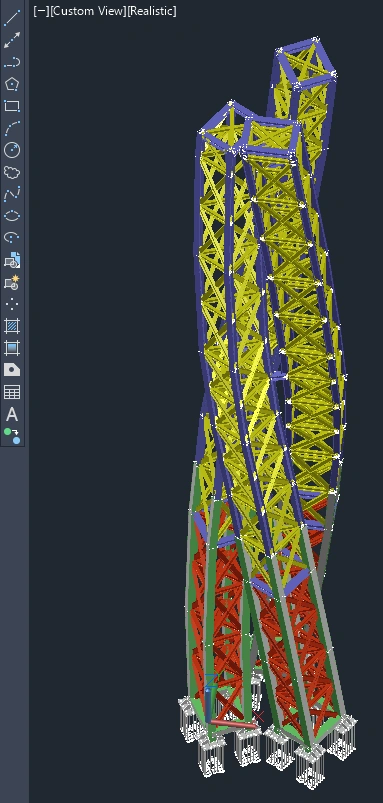 So friends, I found a 3D drawing in the DWG version..., it's about 6 mb..., it's an interlaced totem, the idea would be to cover this totem in sheet metal in solidworks.., but I try to open it as a 3D sketch, without success, basically it doesn't give any error and it doesn't matter.., I tried to open it directly through solid..., but it takes forever.., more than 30 minutes. and when it opens, it's extremely heavy...., it looks like this: