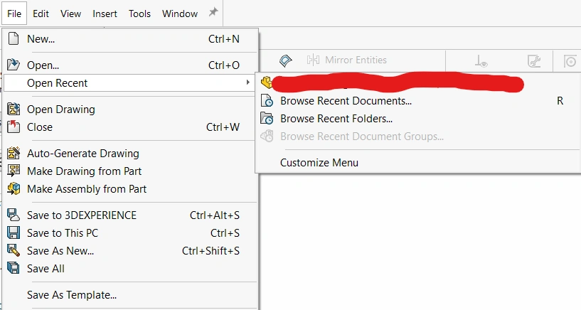 After installing the latest Hotfix, 2.5, the Open Recent functionality is broken for me. Every time I close and reopen SolidWorks, the recent list is wiped clean, and all my pinned documents don't appear. This is extremely frustration. Can someone help?