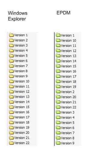 Folders that are not in the vault display in numerical order,but the same folders in the vault do not display in numericalorder. See attached pic for more info.