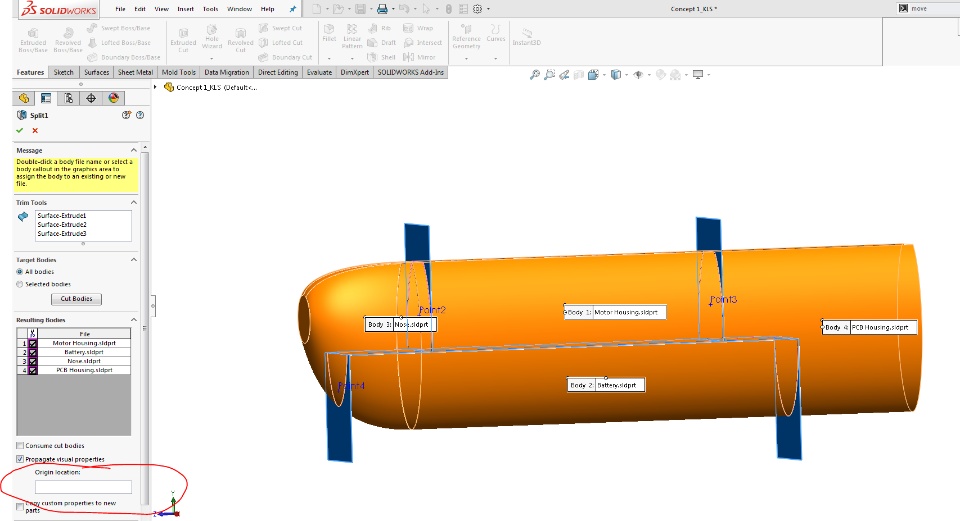 I'm splitting a part that has shared contours into 4 new parts. I'd like to set the origin of each because I have further work to do on them at the individual level. The "origin location" option seems say it can do this but when I open the individual parts, the origin remains wherever the master file origin was. I know I can move/copy the sub-components but I'd rather get the tool to work to save on tree clutter. I tried the option with both vertices and reference points to no avail. Has anybody else gotten this to work properly? Thanks