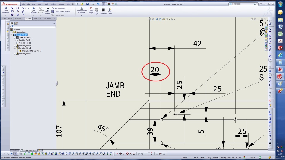 So i am wondering if anyone knows how to reduce the outside dimension line so the drawing can be accepted. (please note, the other dimensions are acceptable it is just the outside dimension on the size 20. (see pic 2)