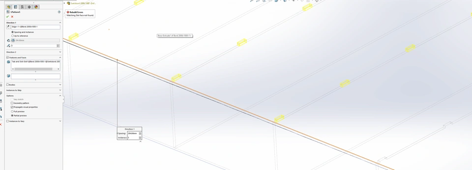 When I try to pattern the slots its fine with 4 copies, but if I add one more it says "Matching slot face not found"