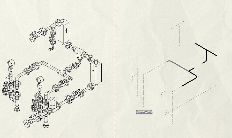 When I insert a piping route in a drawing, I want to getthe"isometric" view (The route to be showed with lines and thecomponents like 2d sketches, exactly like a mechanical design)