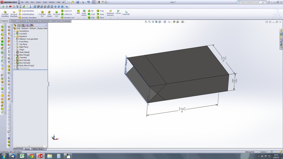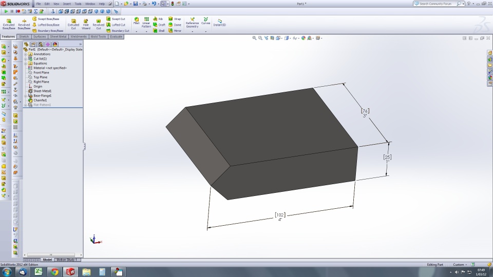We cut a lot of 3D parts on our waterjet table. It's mostly weld prep for thick steel. I'm hoping I haven't bitten off more than I can chew by attempting to automate the process by which we turn a part with more than one angled cut into ACIS format that our waterjet software can use. As a simple example, our current process here is to take a part that looks like this: