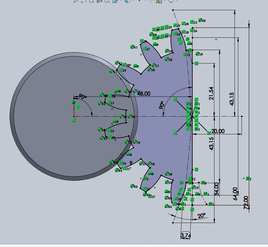 For my Batchelor's thesis I am trying to male a robot inspired by the ABENICS Ball Joint. I want to create a monopole gear in Solidworks by continuously pasting a sketch and changing two angles in the sketch.