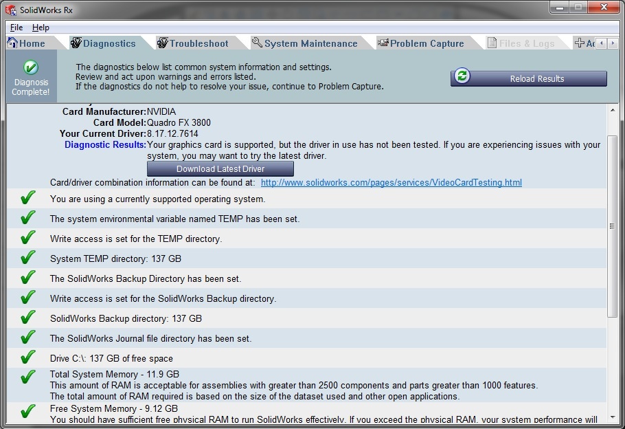 Read into that how you wish.... I have uninstalled the software, updated drivers and graphics card drivers are fine. Rx has reported no errors. I can't update further than SP3 as my update had expired however the other machine is on SP4. This isn't a rant but I find it hard to believe that the hardware I have cannot run the software properly.
