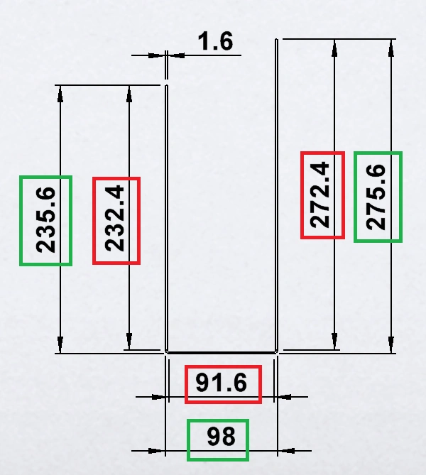 The macro successfully adds the dimensions (highlighted in red), but my requirement is for it to include the overall dimensions, including the arc (highlighted in green).