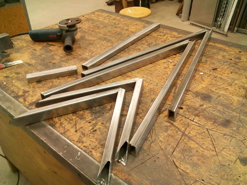 Ok, to make a long story short, I have some things I am calling "wireframe pedestals" that I am making in steel. I have already made two by the method I am going to describe. The pedestals have some odd angles that are used to give them an optical illusion type of look. Solidworks is letting me do all the positioning of the structural members just the way I want them (which is a lot more complex than it looks) and then I am going through and pulling each member into a new part file. There, I am shelling out the member to get an even thickness, sketching a rip line on an appropriate face, then inserting bends to give me a flat pattern. I am then printing the flat pattern and wrapping them around the actual steel tubing to scibe my angles. The angles, or bevels, on the material thickness do not matter too much, I am just undercutting, or coping, the cuts so they fit without problematic gaps. Then I am just mig welding the actual members together (no, I don't have a tig yet), burring the welds and finishing them off. The first two I have done turned out great. I was amazed at how the members fit together so that it eliminated a lot of timely jig work and assembly clamping prior to welding. Most of the time went into the software and finishing the welds. What an awesome way to work!