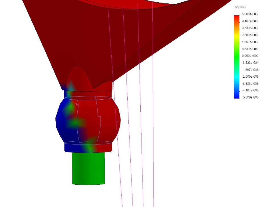 Has anyone modeled this in simulation, I have tried many ways of simulating this without success. The problem I am encountering is while the frame deflects the spherical bearing are not rotating to compensate for the deflection, thus loading the wheels on the edge. Which is not distributing the load on the bearing block as expected. I did model the spherical bearing and bushing and set a no-penetration contact set with zero friction. Somehow it’s not working.
