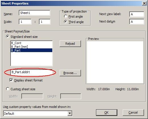 Does anyone know how to set the default format that appears when you add a drawing sheet on the sheet tabs?