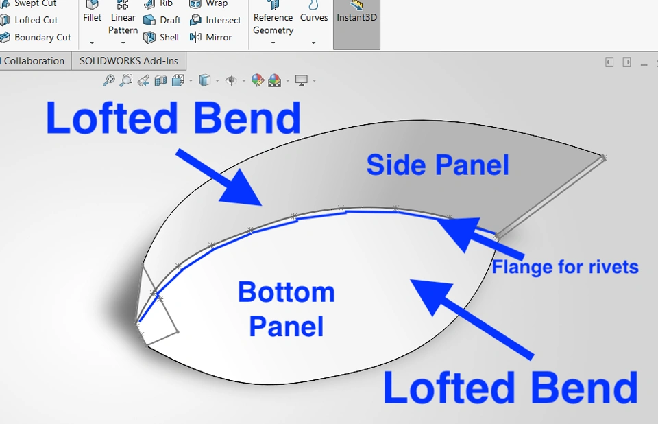 I need to create a flange that follows a spline. I want to create a flange so that I can rivet the side panel to the bottom panel: