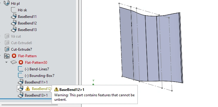 I have a sheet metal part that wont let me flatten it after i made a cut: